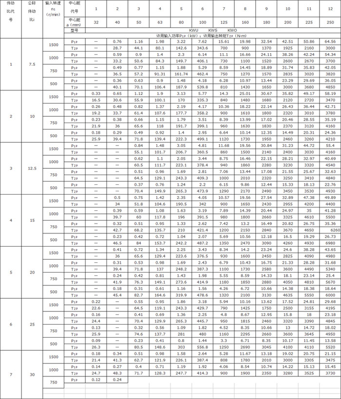 KW型減速器的許用輸入功率和許用輸出轉矩