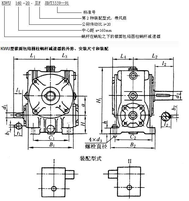 KW型錐面包絡圓柱蝸桿減速器代號和標記方法