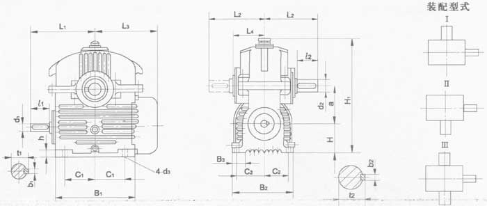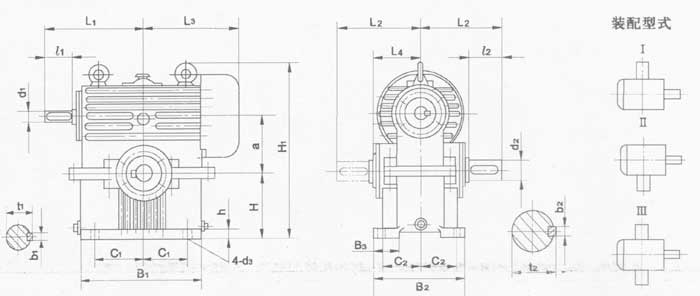 HWT型減速器外形尺寸及裝配形式