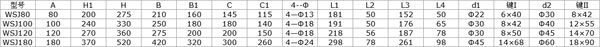 WSJ減速器主要參數(shù)表