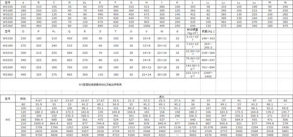 WS型圓柱蝸桿減速器適用(蝸桿上置)WD(蝸桿下置)適用于蝸桿嚙合處滑動速度不大于7.5m/s;蝸桿速度不超過1500r/min;工作環境溫度為-40~+40℃;并可正、反方向運轉的場合。