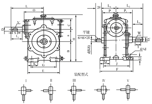 WS型圓柱蝸桿減速器(80~120)安裝尺寸